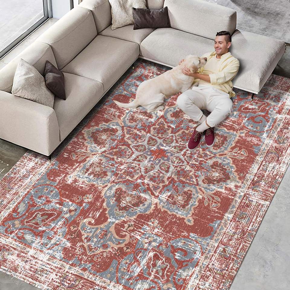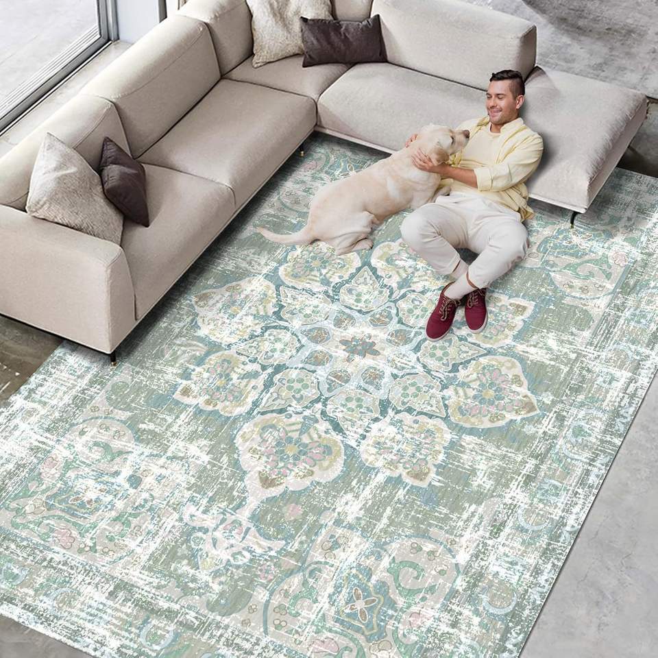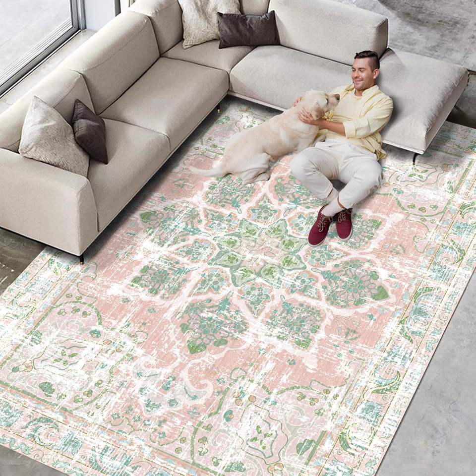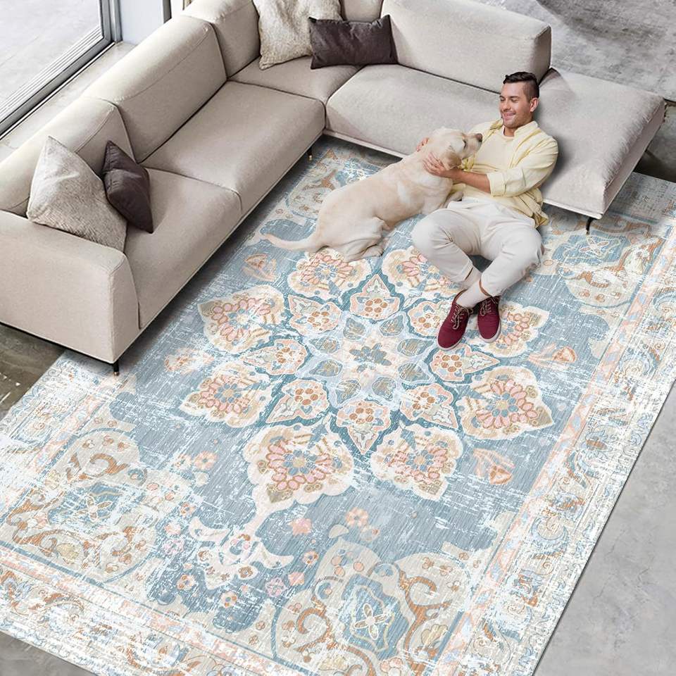 พรมปูพื้นรูปทรงสี่เหลี่ยมผืนผ้า ผลิตจากใยโพลีเอสเตอร์ ลายคริสตัลเวลเวท เมดัลเลียน สไตล์โบฮีเมียน วินเทจ ลายเปอร์เซีย
