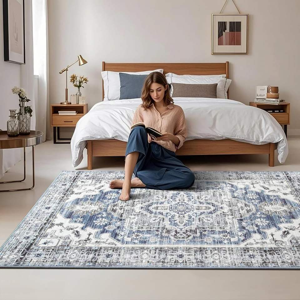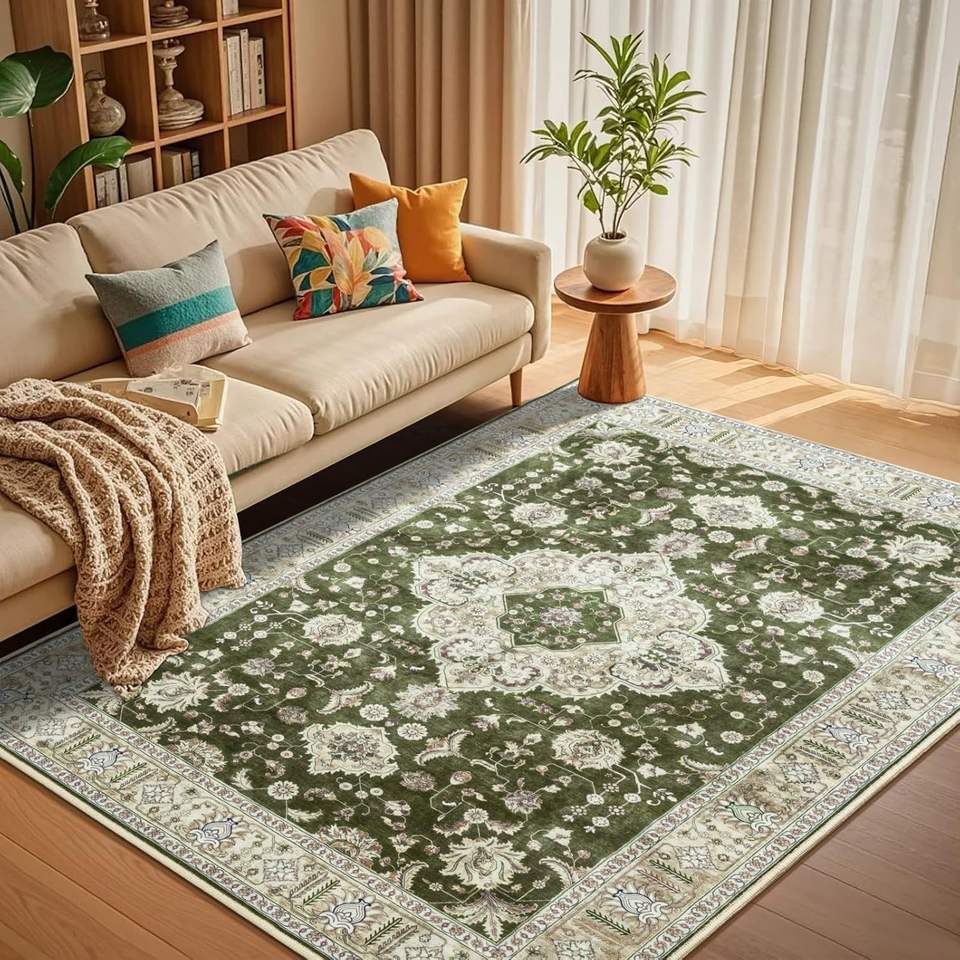 พรมกำมะหยี่คริสตัลลายเปอร์เซียทรงสี่เหลี่ยมผืนผ้า ป้องกันคราบสกปรก เหมาะสำหรับห้องนั่งเล่นและห้องนอน พรมตกแต่ง