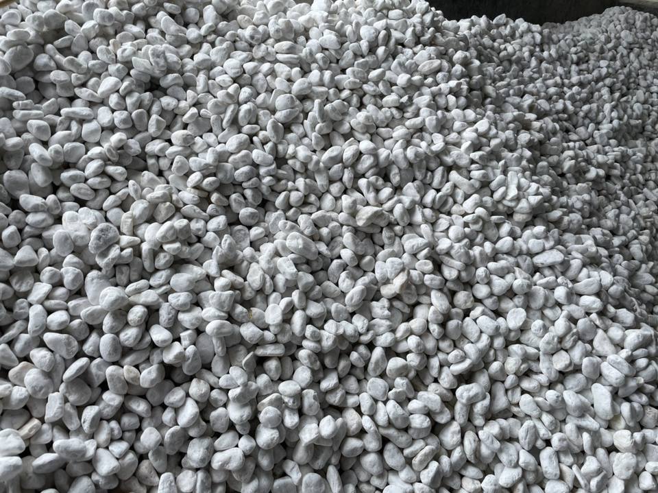 หินกรวดหินอ่อนสีขาวคริสตัล หินธรรมชาติทรงกลม สำหรับจัดสวนภายในและภายนอก และตกแต่ง