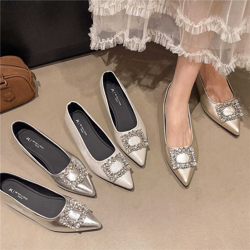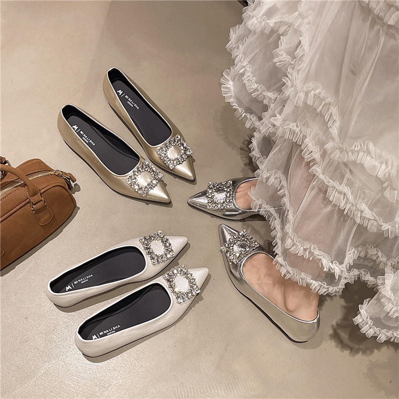 รองเท้าส้นเตี้ยติดคริสตัลสำหรับผู้หญิงรองเท้าแตะหัวแหลมสุดหรูรองเท้าแตะดีไซน์เนอร์เซ็กซี่ฤดูร้อนรองเท้าโลฟเฟอร์2025ใหม่รองเท้าปาร์ตี้ผู้หญิง zapatos mujer