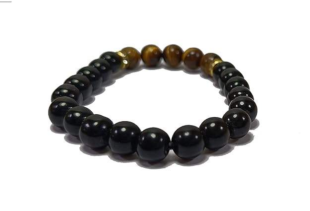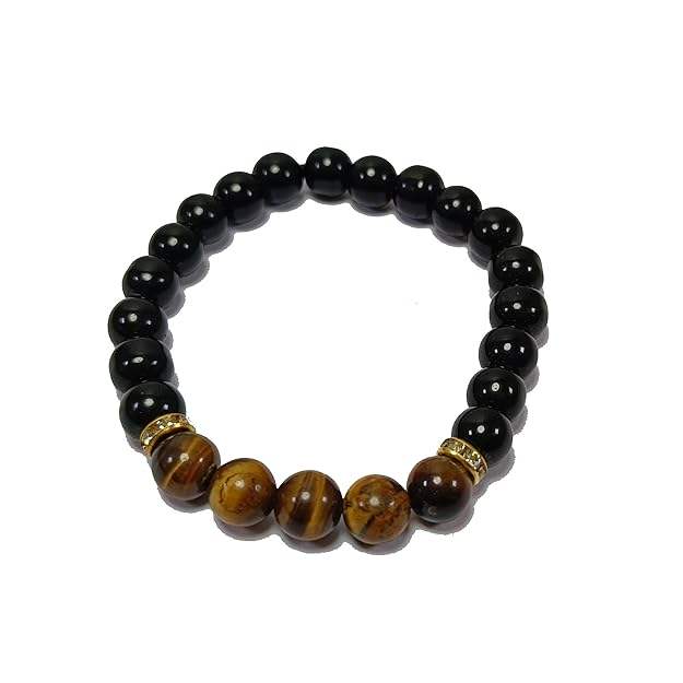 สร้อยข้อมือคริสตัลออบซิเดียนสีดำและลูกปัดตาเสือพลอย8มม. ของขวัญแฟชั่นผู้ชายและผู้หญิง