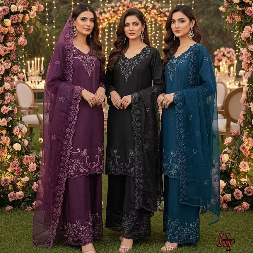 ชุดชาลวาร์ คามีซผ้าคริสตัลวิสโคส พร้อมกางเกงเข้าชุด และผ้าคลุมไหล่ดูปัตตาผ้าออร์แกนซ่าเนื้อหนา งานฝีมือประณีต ให้ลุคสง่างาม