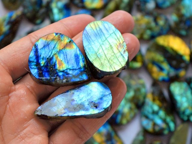 หินลาบราดอไรต์ผลึกผลึกหินอัญมณีหินโอปอลธรรมชาติที่มีใบรับรองบำบัดจาก Gia