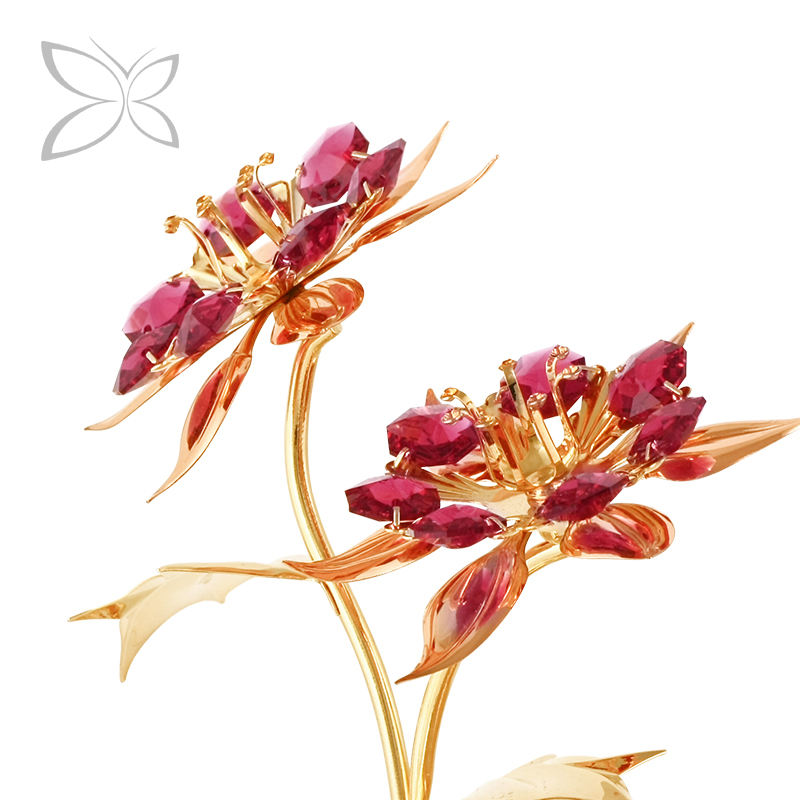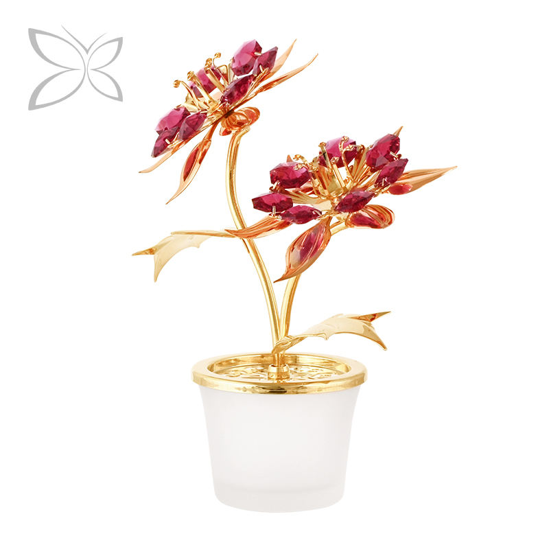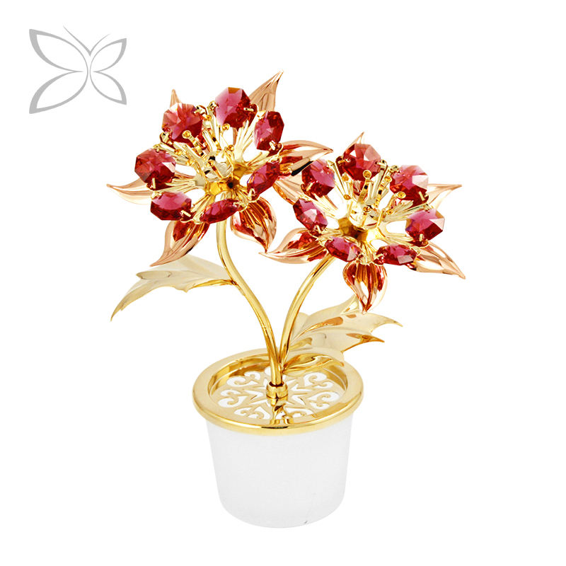 คริสตอคราฟท์ ต้นโปอินเซตเทียสชุบทอง ประดับด้วยคริสตัลทรงเหลี่ยมเจียระไน สำหรับตกแต่งภายในในเทศกาลคริสต์มาส ขนาด 12.8x16 ซม.