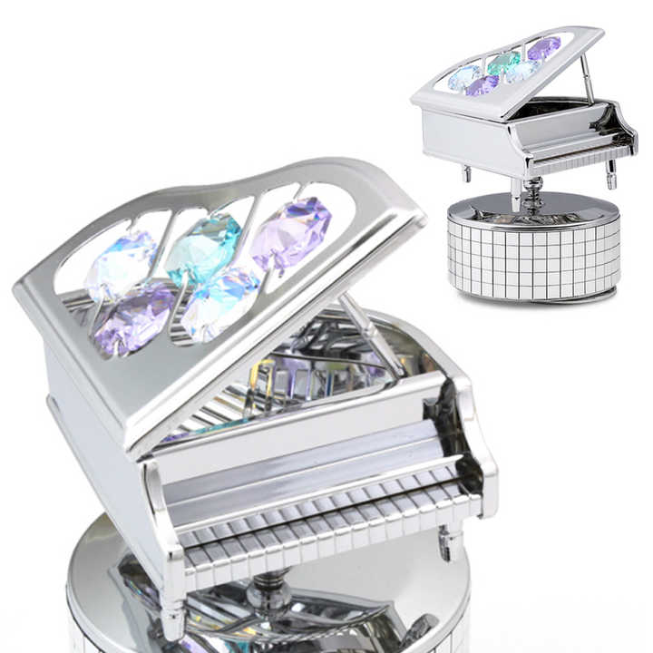 กล่องดนตรีเปียโนคริสตัลโลหะวินเทจคริสตอคราฟท์ตกแต่งด้วยคริสตัลเจียระไนสวยงาม ของขวัญสำหรับนักดนตรี นักเรียน และครู