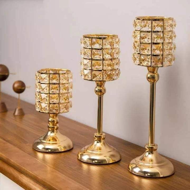 ชุดเชิงเทียนคริสตัล 3 ชิ้น พร้อมฐานอะลูมิเนียมหล่อขึ้นรูป ของตกแต่งบ้าน วางบนโต๊ะ คุณภาพเยี่ยม ดีไซน์ใหม่