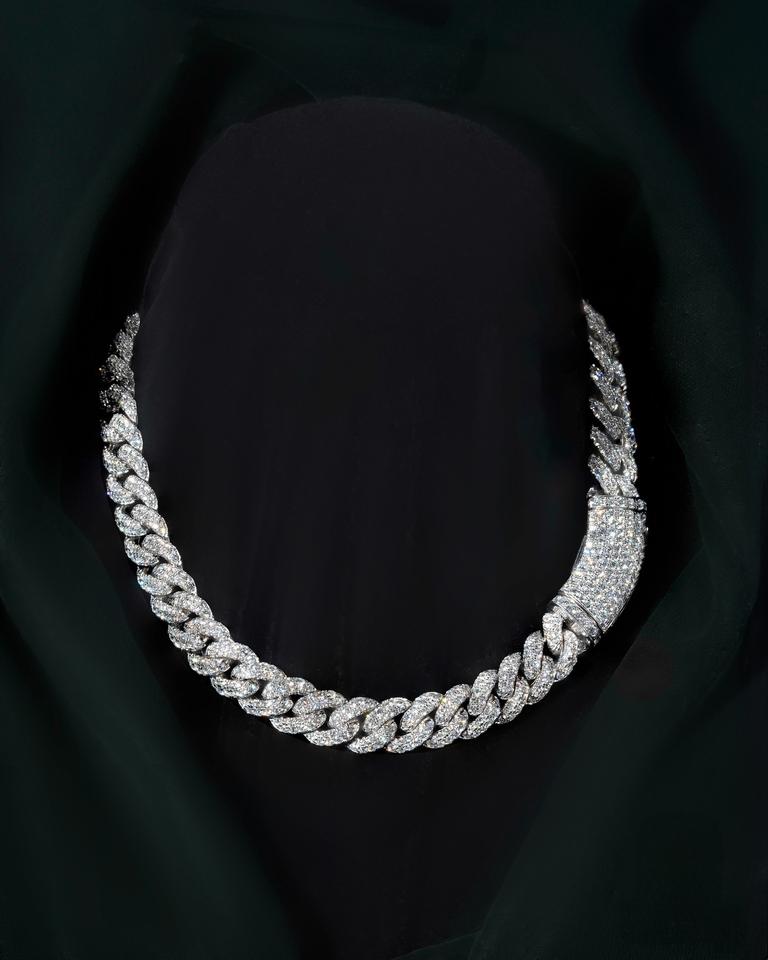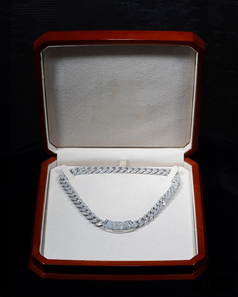 สร้อยคิวบา โมอิสซาไนต์ VVS1 เงินแท้ 925 และทองคำขาว 14K งานแฮนด์เมด สไตล์ฮิปฮอป สร้อยคอผู้ชายสำหรับงานปาร์ตี้ ผลิตในสหรัฐอเมริกา
