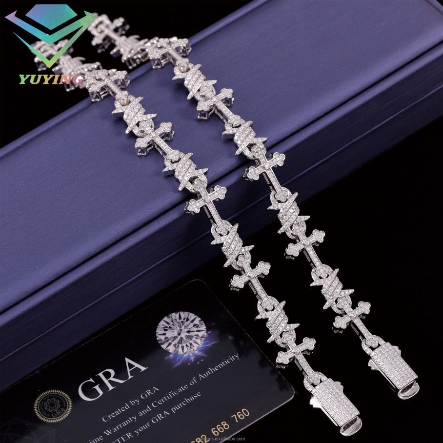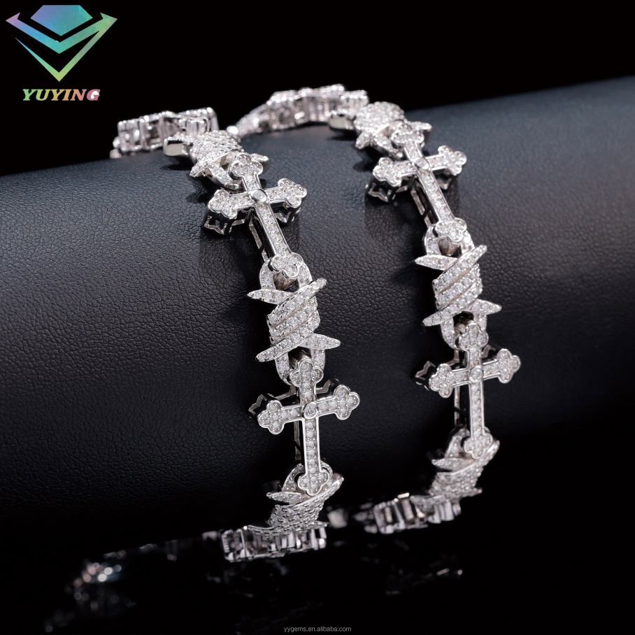สร้อยข้อมือคิวบาแบบไขว้ เงินสเตอร์ลิง ชุบโรเดียม ประดับเพชรโมอิสซาไนต์ VVS พร้อมใบรับรอง GRA เครื่องประดับฮิปฮอป ของขวัญสำหรับงานปาร์ตี้และงานแต่งงาน