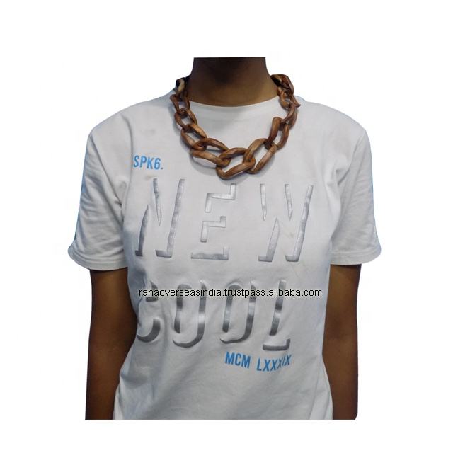 Cuban Wood Bead Chain Necklace for Girls and Women