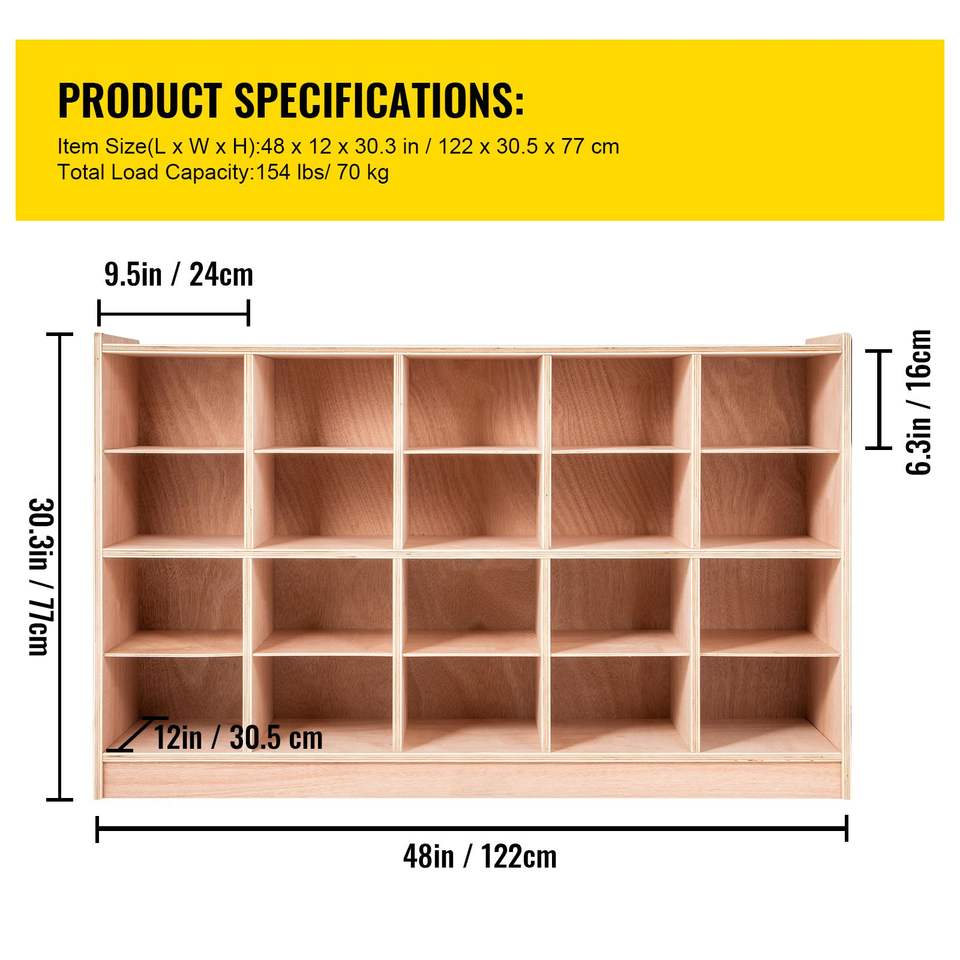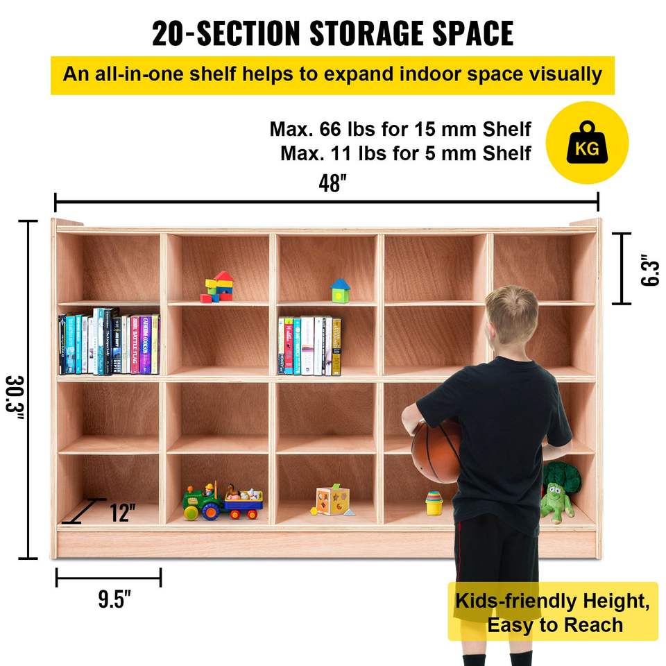 ตู้เก็บของเคลื่อนที่แบบช่องใส่ของ 20 ช่อง สำหรับห้องเรียน ชั้นวางของสำหรับเด็กและวัยรุ่น ขนาด 4 x 5