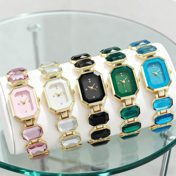 นาฬิกาผู้หญิงทรงสี่เหลี่ยมลูกบาศก์สี