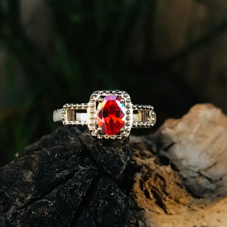 ชื่อผลิตภัณฑ์:แหวนแต่งงานโกเมนดวงจันทร์แหวนเพทาย