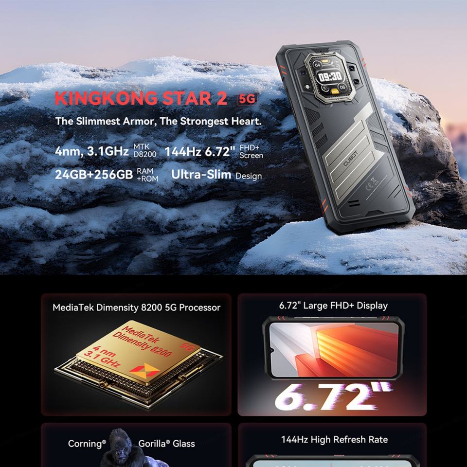 Cubot KINGKONG Star 2 5G LTE GSM สมาร์ทโฟนที่ขรุขระ OCTA Core MTK dimensity 8200 5100mAh 24GB + 256GB 6.7 "144Hz NFC Dual SIM