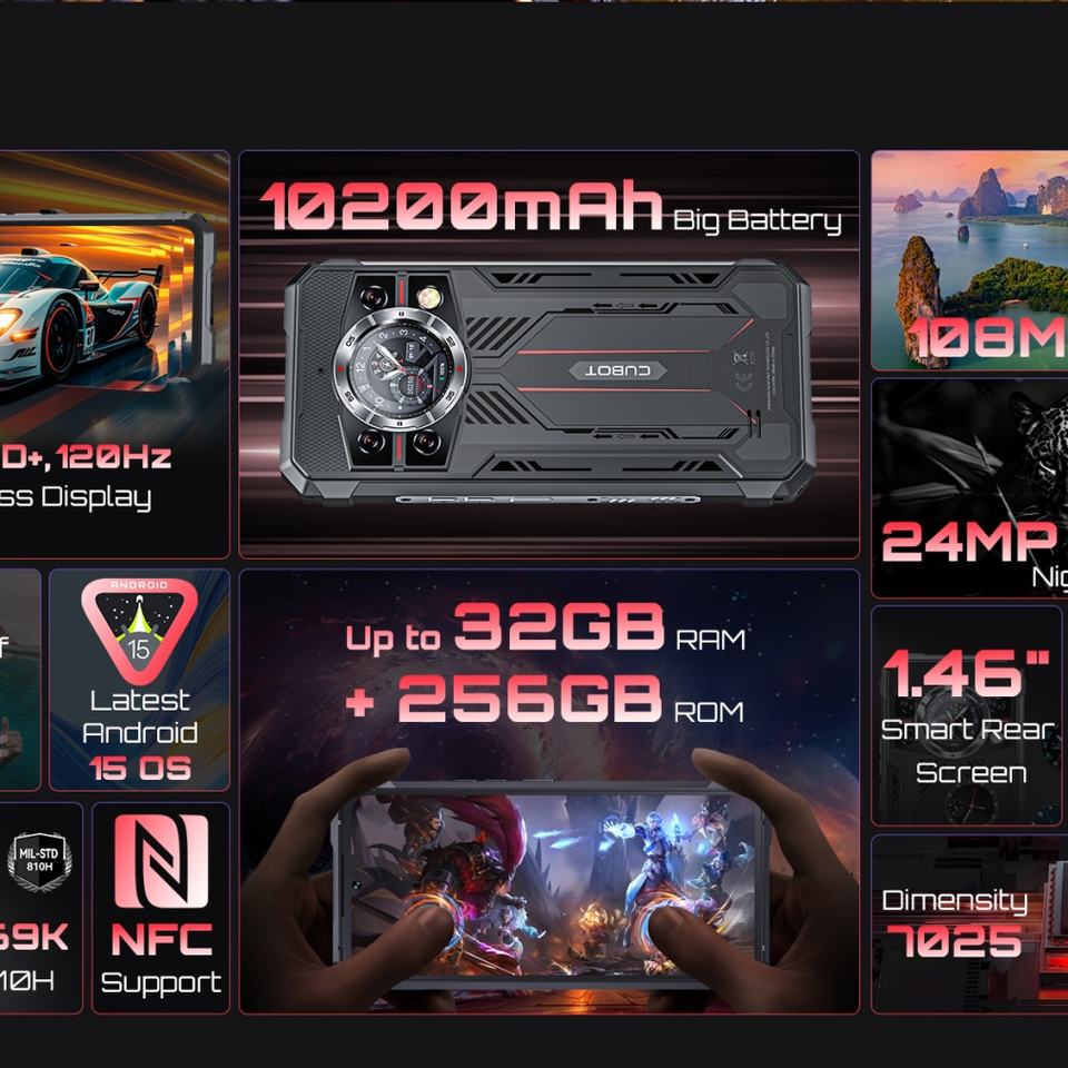 โทรศัพท์มือถือ Cubot Kingkong 11 รุ่นทนทาน รองรับ 5G กล้องมองกลางคืน ความละเอียดหลัก 108MP หน่วยความจำ 16+256GB ระบบปฏิบัติการ Android 15 สมาร์ทโฟน Cubot