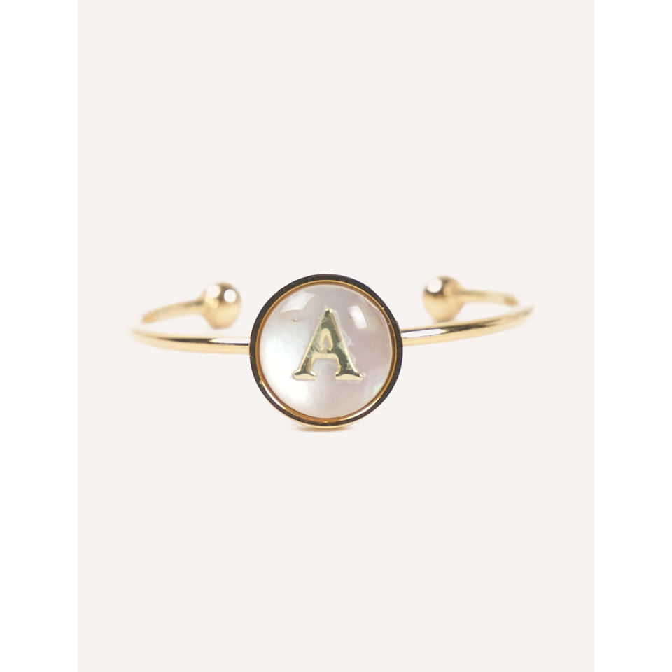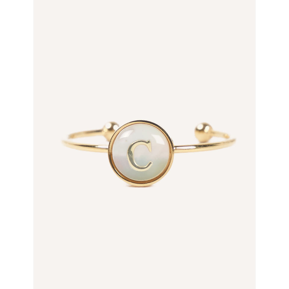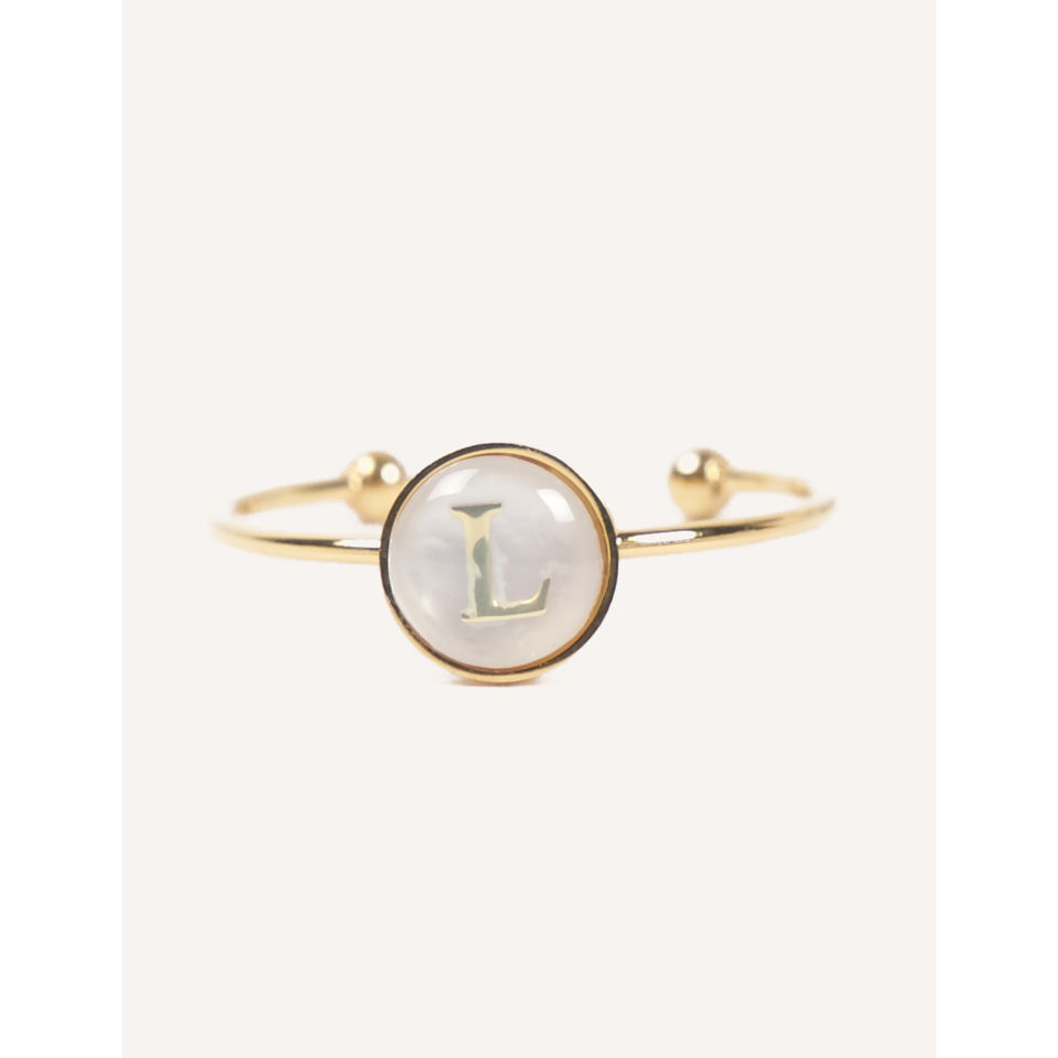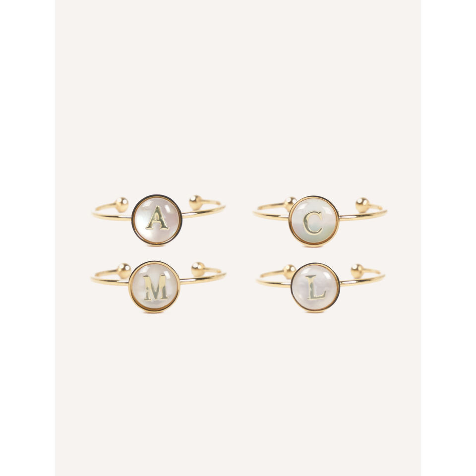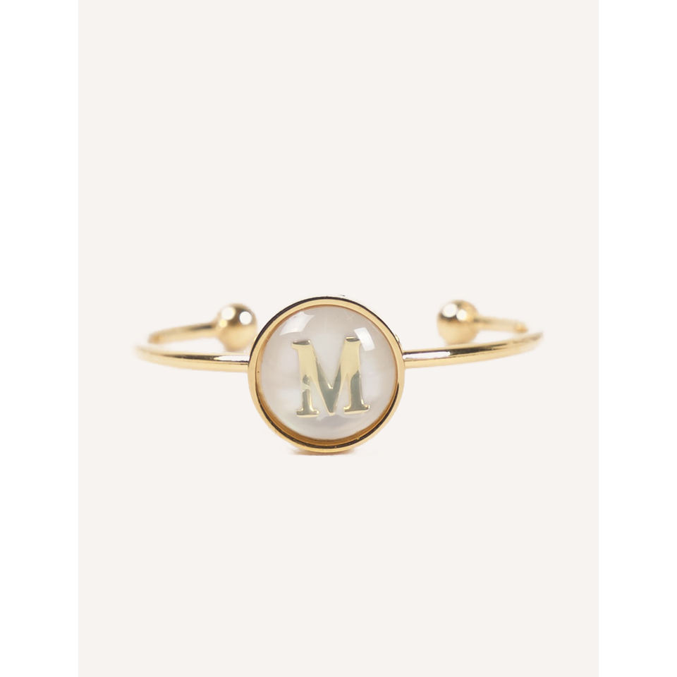 แหวนสแตนเลสสตีลชุบทองคำขาว Cucocuca YXM R18 รุ่น Letra ประดับมุกเปลือกหอย ตัวอักษร A/C/M/L ปรับขนาดได้ สวมใส่ได้ทุกวัน ไซส์ EU 48h