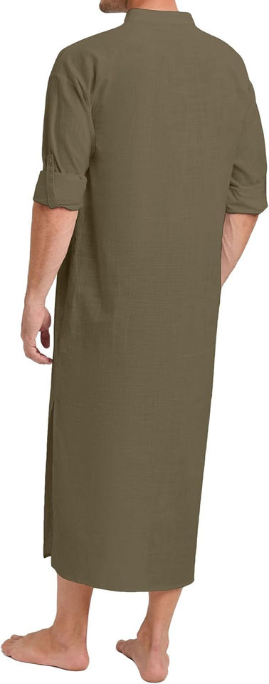เสื้อคลุมมุสลิมแบบเรียบร้อย แขนจั๊มพ์ คอทรงกลม สำหรับผู้ชาย ดีไซน์หรูหรา สวมใส่สบาย น้ำหนักเบา เหมาะสำหรับใส่ไปชายหาด ปรับขนาดได้ ความยาวคลุมเท้า ผ้าฝ้าย