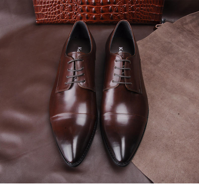 รองเท้าหนังทรงแหลมสำหรับผู้ชาย กันน้ำ ระบายอากาศได้ดี พร้อมซับในกันกลิ่น หัวรองเท้าและอุ้งเท้าเสริมความแข็งแรง