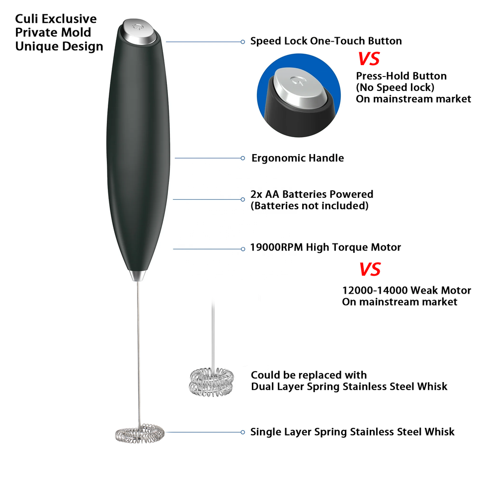 เครื่องตีฟองนมไฟฟ้าแบบมือถือ Culi 2025 รุ่นใหม่ พร้อมด้ามสแตนเลส สำหรับใช้ในครัว