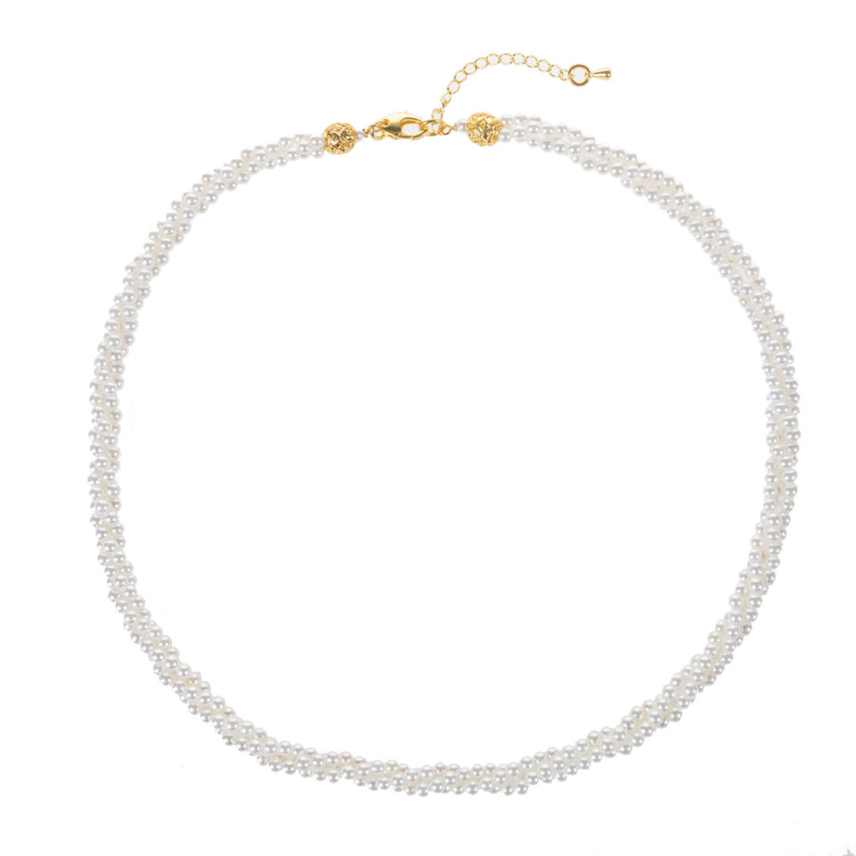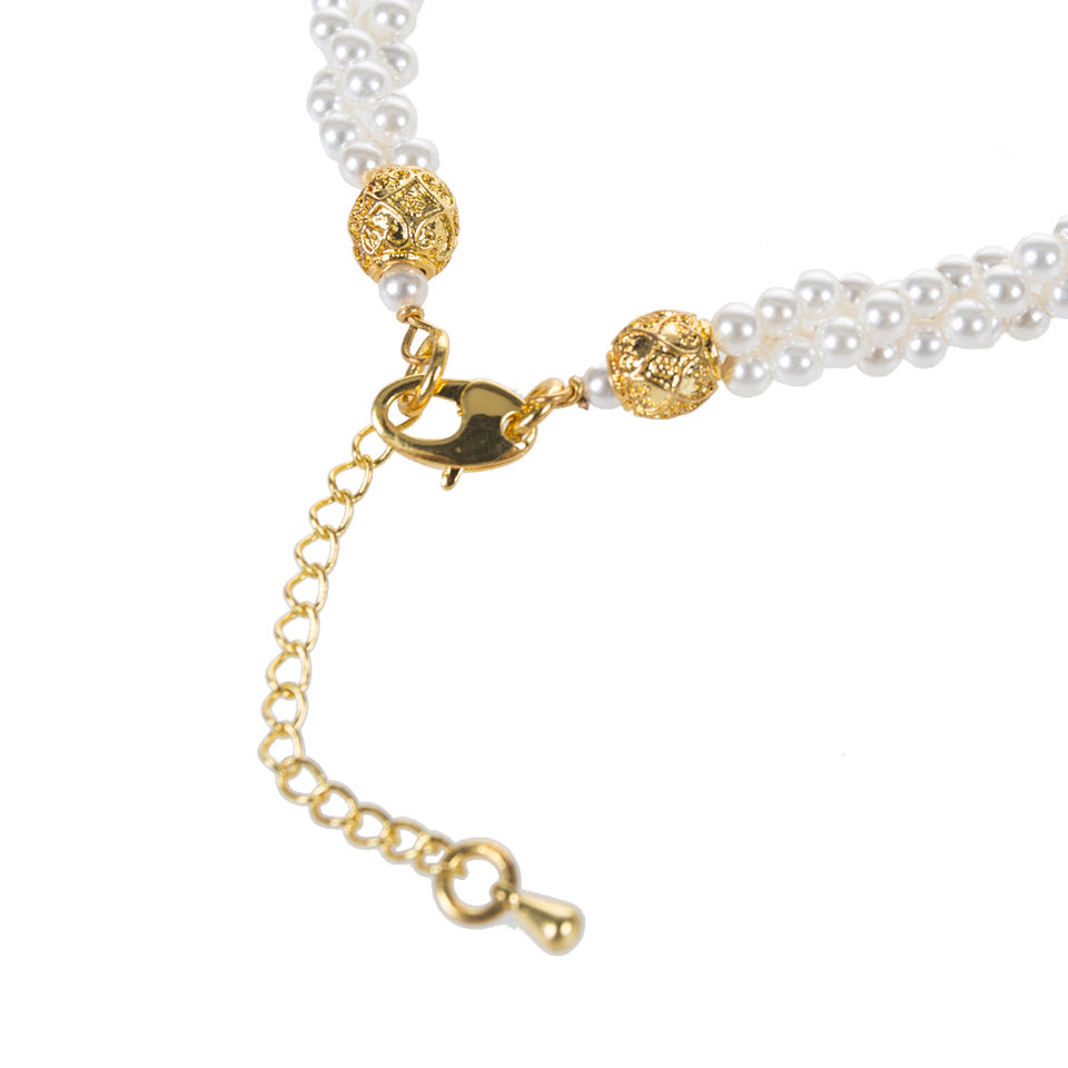 สร้อยคอมุกสีขาวเลี้ยงแบบมีคุณค่าพร้อมโซ่บิดเกลียว 3 แถว ขนาด 18 นิ้ว มุกขนาด 3 มม.