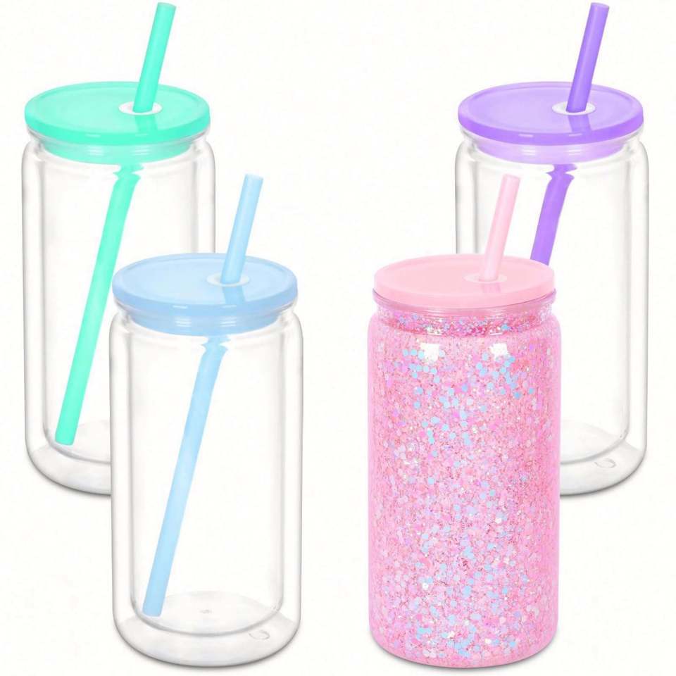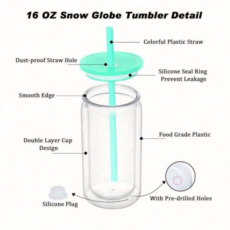 แก้วน้ำทรงกลมแบบสโนว์โกลบ DIY แบบใสสองชั้น พลาสติก 20 ออนซ์ แก้ว PS สไตล์อเมริกัน ของขวัญทางธุรกิจ บรรจุกล่องสีขาวแยกชิ้น