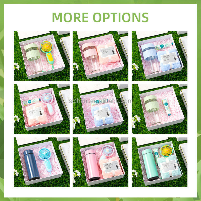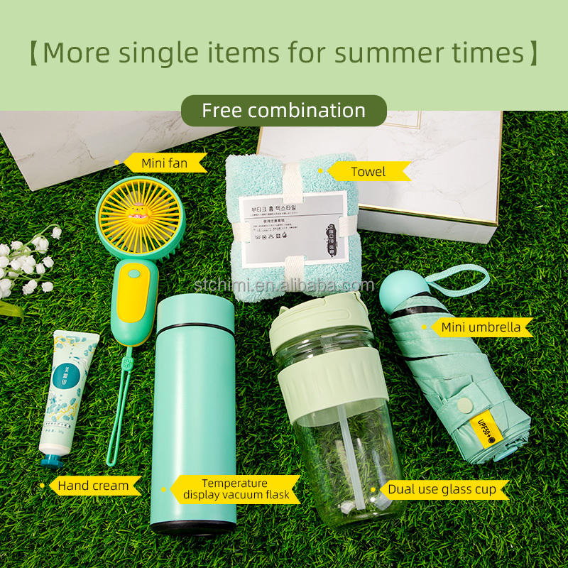 พัดลมมือถือขนาดเล็กพร้อมผ้าขนหนู ของที่ระลึกยอดนิยมสำหรับเทศกาล ชุดของขวัญขอบคุณสำหรับแขก ของชำร่วยงานวันเกิดสำหรับผู้หญิง