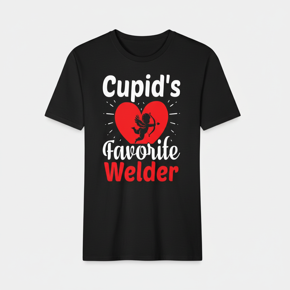 เสื้อยืดช่างเชื่อมสุดโปรดของคิวปิด วันวาเลนไทน์ แขนสั้น พิมพ์ลาย ผ้าฝ้าย คอโอ ทรงปกติ ผ้าเจอร์ซีย์ถัก