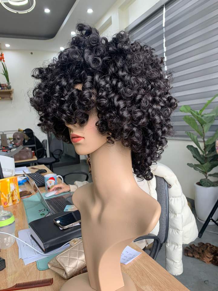 วิกผมหยิกยาวสำหรับผู้หญิงผมหยิกสีดำวิกผมหยิกด้านหน้า100% ผมจริงจากเวียดนาม