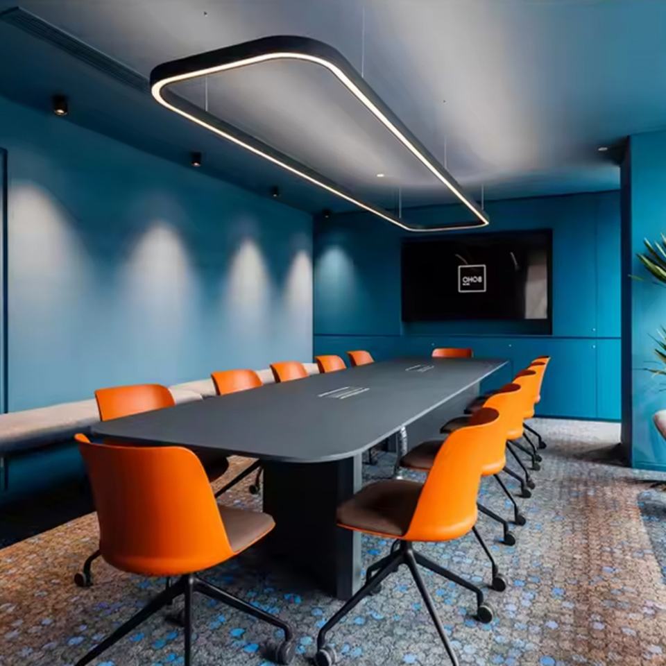 ไฟแชนเดอเลียแบบเส้นตรง LED ไฟโคมระย้าทรงกลมทรงกลมหรูหราจี้ทรงสี่เหลี่ยมโค้ง