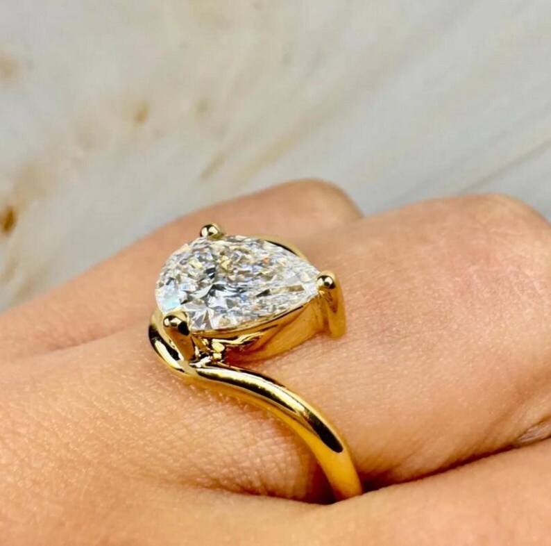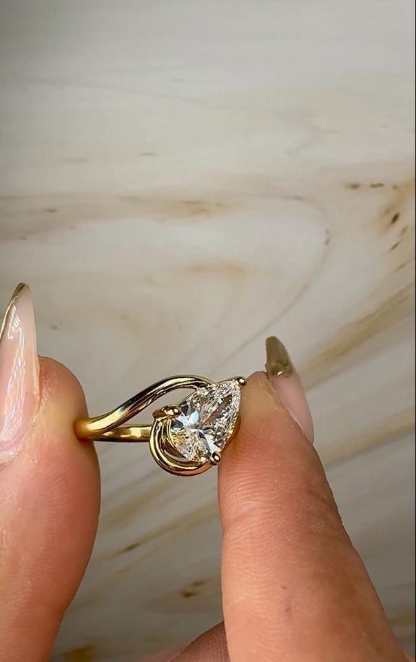 แหวนเซอร์ไพรส์ประดับเพชรรูปลูกแพร์วงโค้งที่เป็นเอกลักษณ์