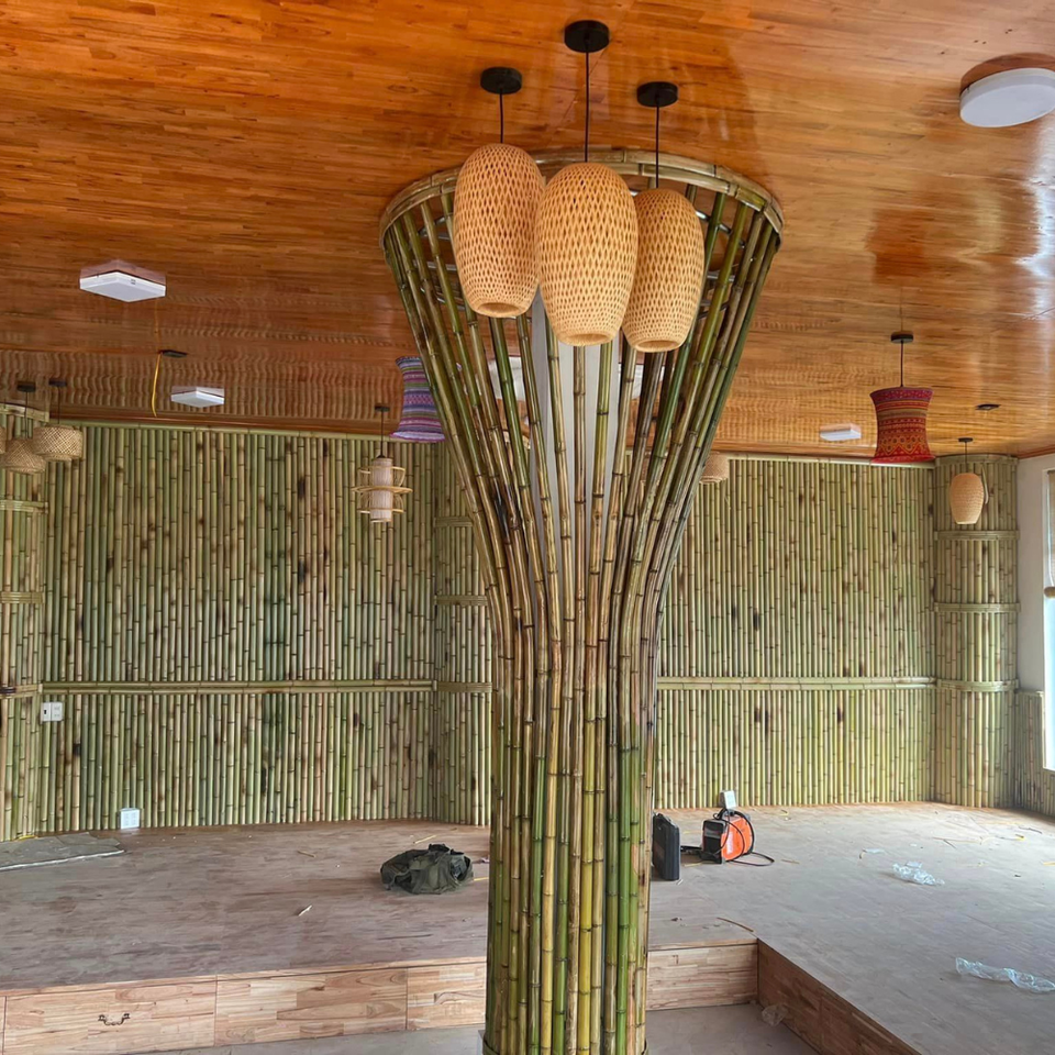 เสาไม้ไผ่โค้งสำหรับตกแต่งสะพานไม้ไผ่และทางเท้าผลิตภัณฑ์วัตถุดิบจากธรรมชาติ