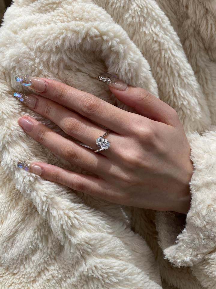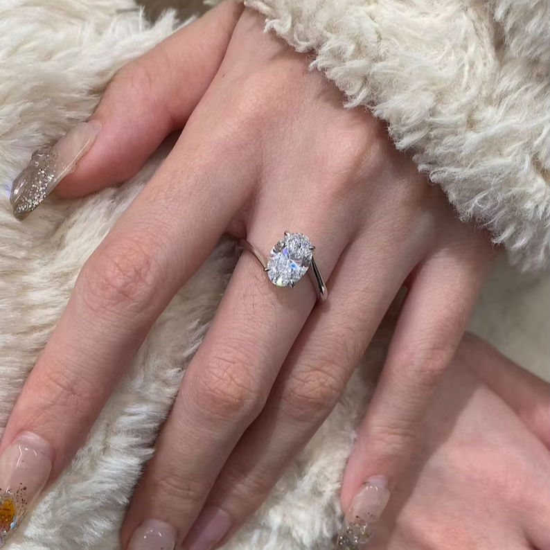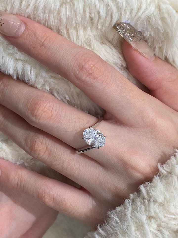 แหวนโค้ง925เงินสเตอร์ลิงแท้แหวนเพชรโมอิสซาไนต์ทรงรีตัดเป็นของขวัญสำหรับคู่รัก