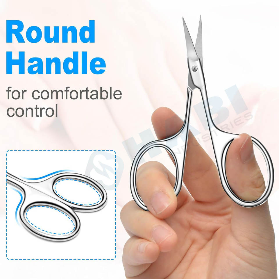 กรรไกรตัดหนังแบบโค้งสแตนเลสมืออาชีพกรรไกรเสริมสวยคมขนาดเล็กแม่นยำปลายแหลมสำหรับทำเล็บคิ้ว