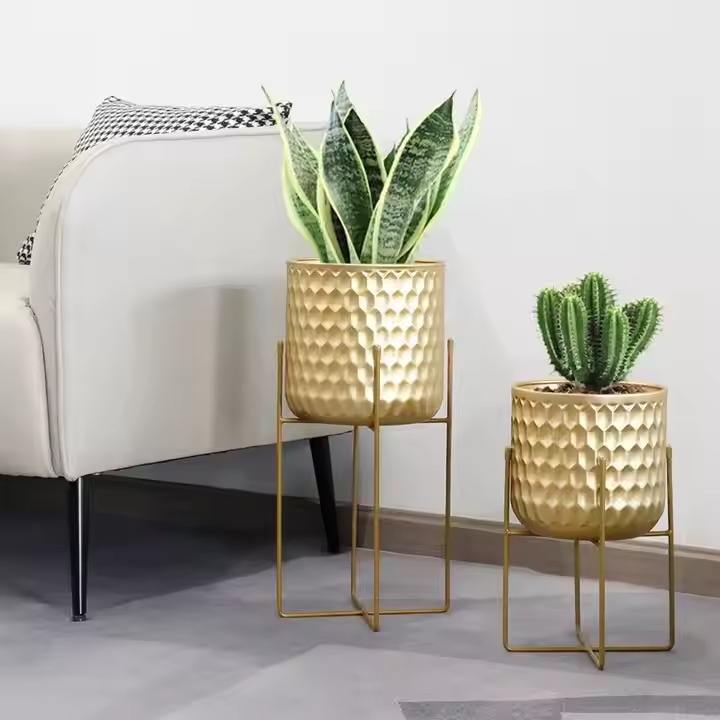 Curved Design Brass Planter Pot Drainage Hole for Indoor/Outdoor Use Shiny Golden Finish Eco-Friendly for Home Garden Tabletop