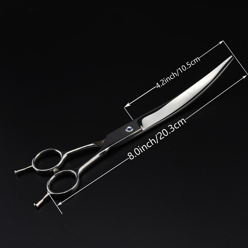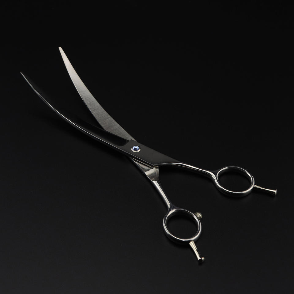 กรรไกรตัดขนสุนัขแบบโค้ง\กรรไกรตัดขนสัตว์เลี้ยงสแตนเลสพร้อมด้ามจับที่ทนทานและสะดวกสบาย