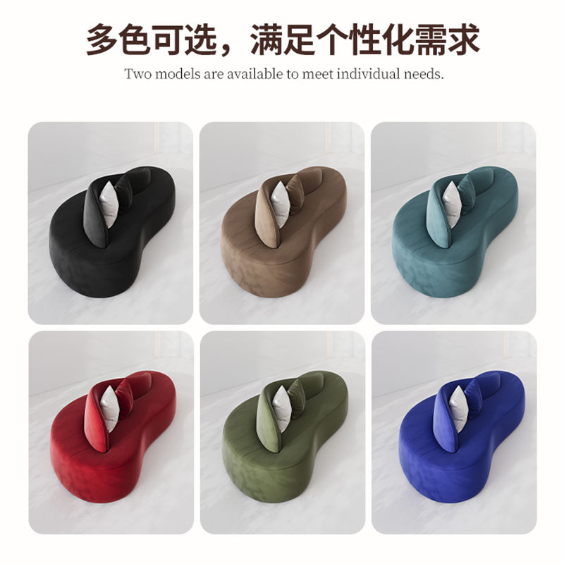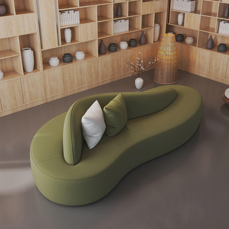 โซฟาโค้งสองด้าน ผ้าสีเขียว รูปทรงเมฆ สำหรับพื้นที่นั่งเล่นและรับรองแขก ดีไซน์มินิมอล เฟอร์นิเจอร์ร้านเสริมสวย
