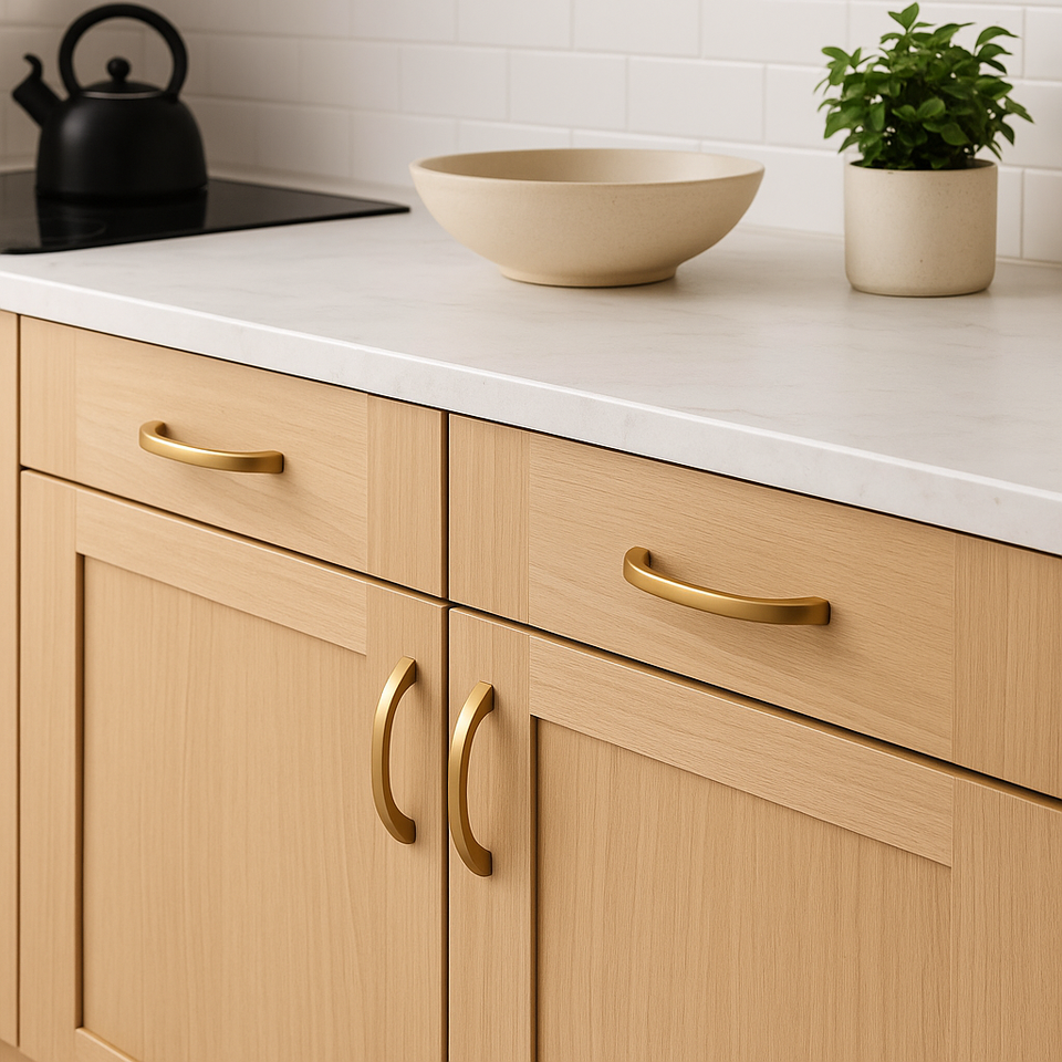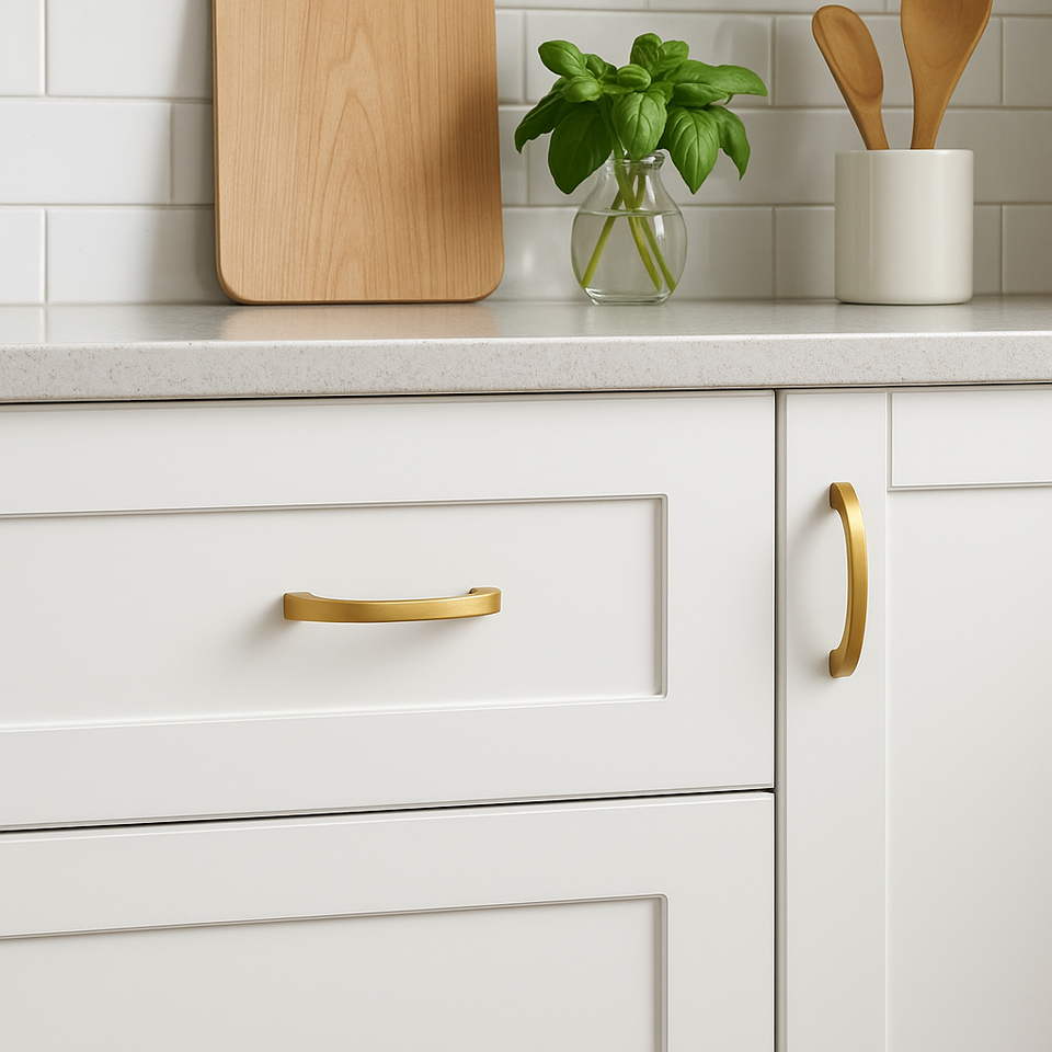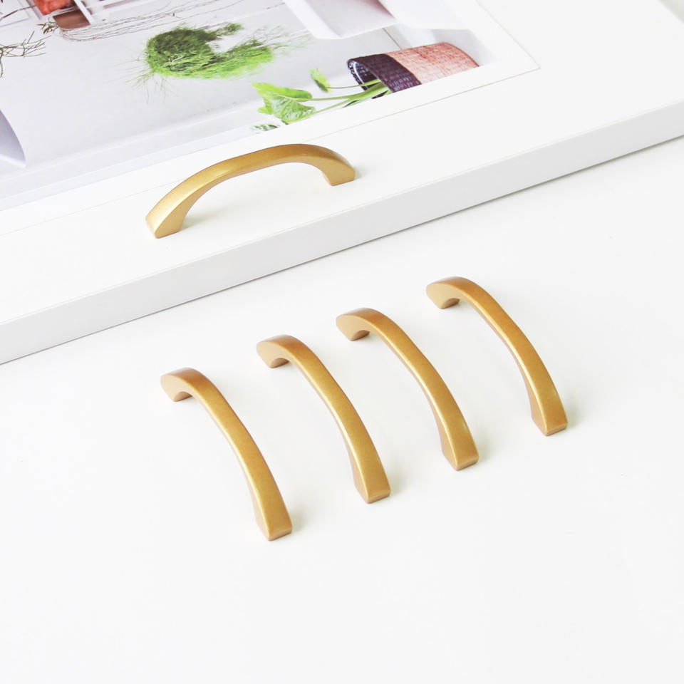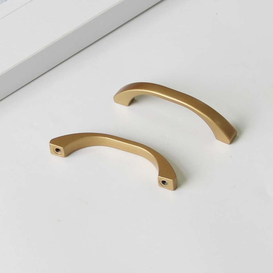 มือจับและลูกบิดเฟอร์นิเจอร์ทรงสี่เหลี่ยมโค้งมนสีทอง ZAMAK ร่วมสมัย เป็นมิตรกับสิ่งแวดล้อม ทนทาน เหมาะสำหรับสถานที่กีฬาและลิ้นชัก