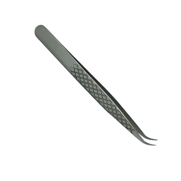 แหนบปลายโค้งแหลมสำหรับต่อขนตา ด้ามจับเพชร ป้องกันการลื่น โลโก้สั่งทำได้ ผลิตจากสแตนเลสอย่างดี สำหรับมืออาชีพ