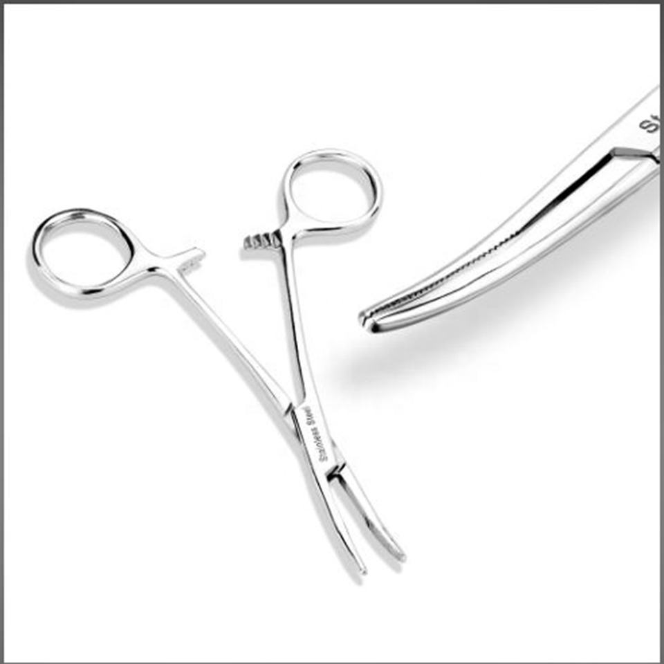 คีมเคลลี่แบบโค้งสำหรับจับแหวนหรือเข็มได้อย่างมั่นคง เครื่องมือเจาะร่างกายแบบมืออาชีพทำจากสแตนเลส