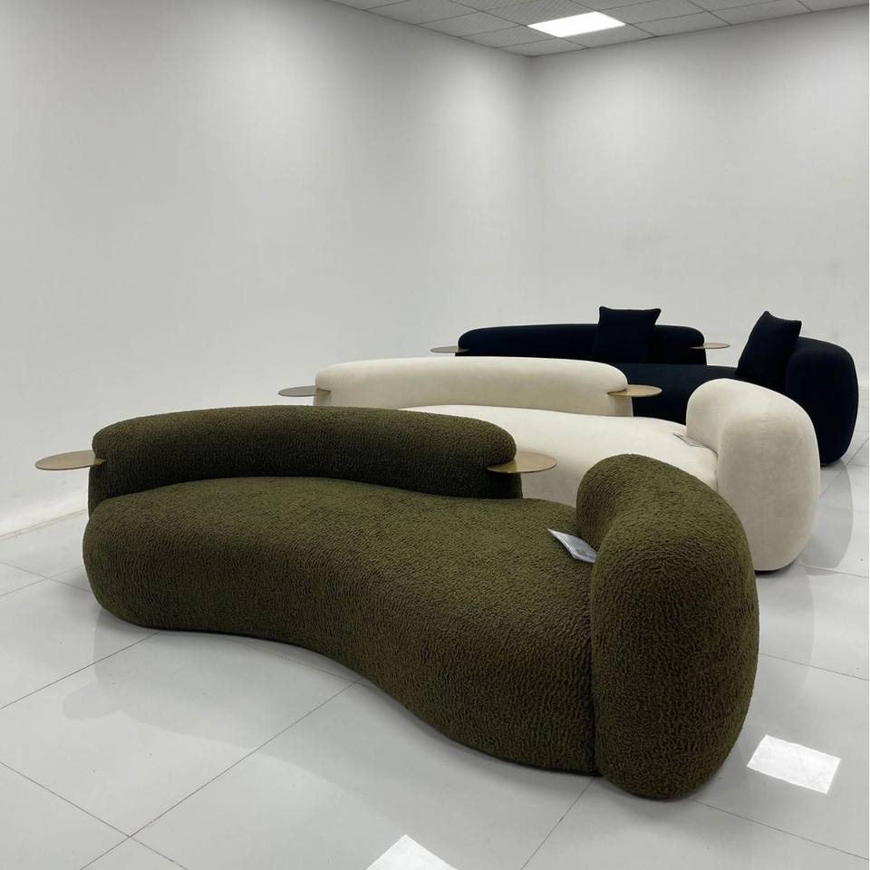 โซฟาแบบแยกส่วนโค้งสำหรับวิลล่าห้องนั่งเล่นฟองน้ำเติมครีม Wabi สีที่ทันสมัยปรับแต่งได้