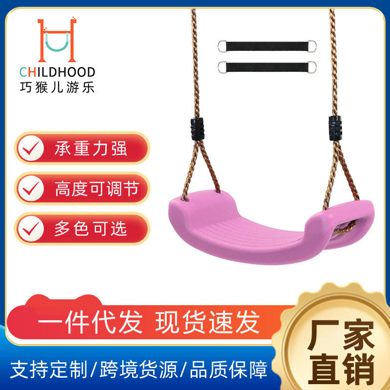 ชิงช้าพลาสติกโค้งพร้อมสายรัดเชื่อมต่อ อุปกรณ์สนามเด็กเล่นกลางแจ้งสำหรับเด็ก ใช้ในสวนสนุก รุ่น Qhe16