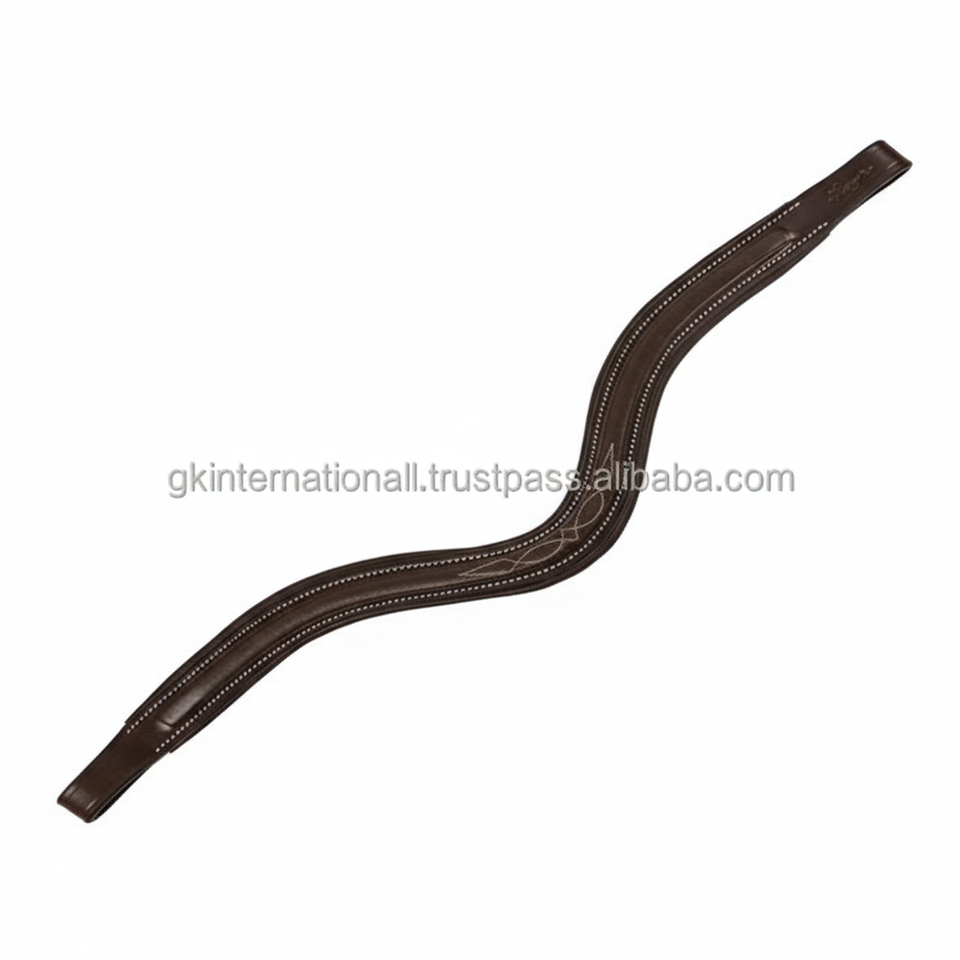 สายหนังวัวสีดำแต่งตะเข็บทรงโค้งสี่เหลี่ยม,สายหนังวัวแบบฟูลเกรนนูนแต่งตะเข็บแฟนซีทรงโค้งสำหรับม้าในหนังวัวสีดำและน้ำตาล