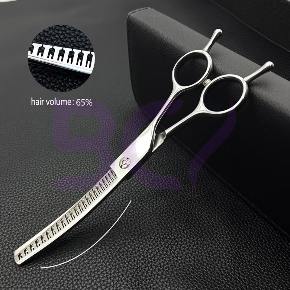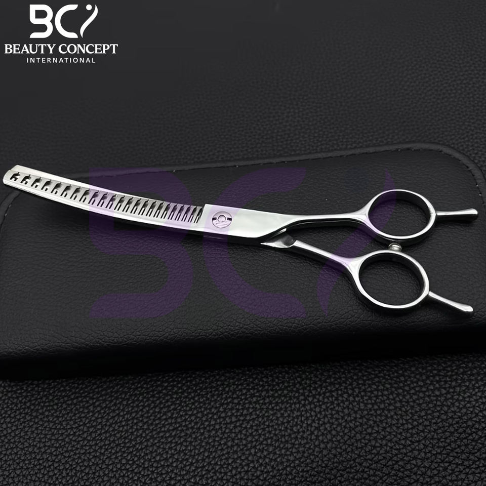กรรไกรซอยผมสแตนเลสทรงโค้งรุ่นใหม่ ปรับแต่งได้ ทนทาน กันลื่น ด้ามจับปรับได้ คมและทนทาน
