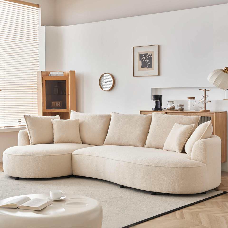 โซฟาโค้ง, โซฟาโค้งทันสมัยสำหรับห้องนั่งเล่น โซฟาแบบแยกส่วน, โซฟาหุ้มเบาะสไตล์กลางศตวรรษสำหรับห้องนอน, สีน้ำตาล