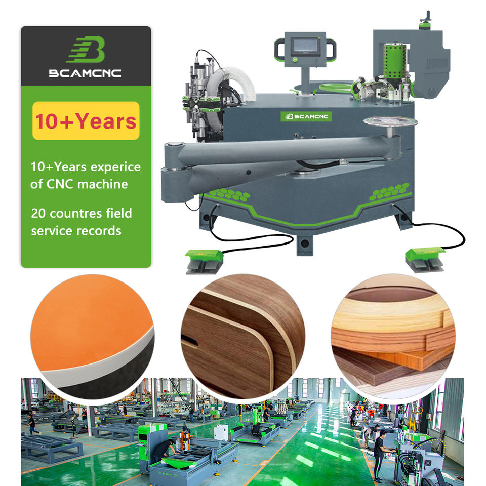 เครื่องปิดขอบไม้ PVC อัตโนมัติแบบโค้งและตรง พร้อมระบบติดกาวและกัดแต่งขอบสำหรับการผลิต MDF