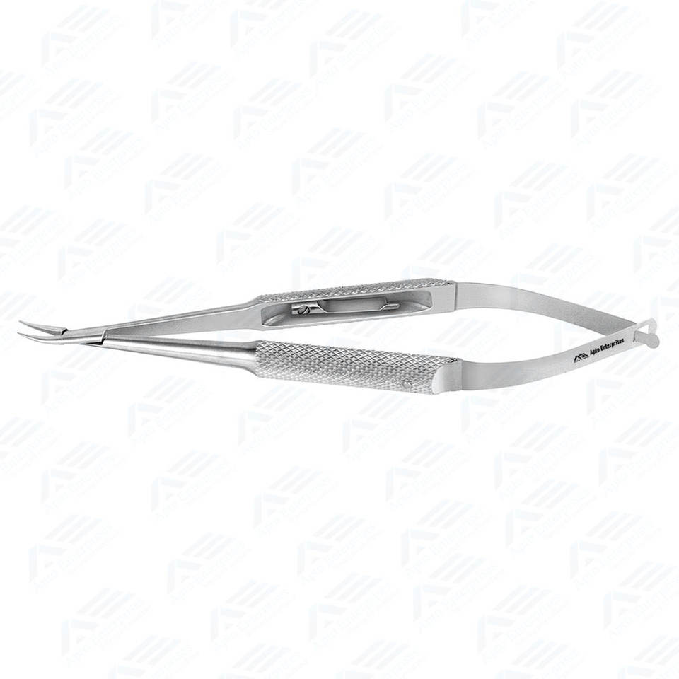 ที่จับเข็มแบบโค้งพร้อมตัวล็อค ทำจากเหล็กกล้าไร้สนิมเกรดทางการแพทย์ คุณภาพสูง สำหรับเครื่องมือผ่าตัดตา
