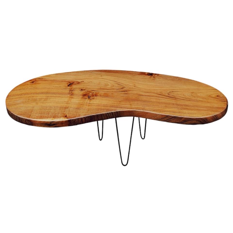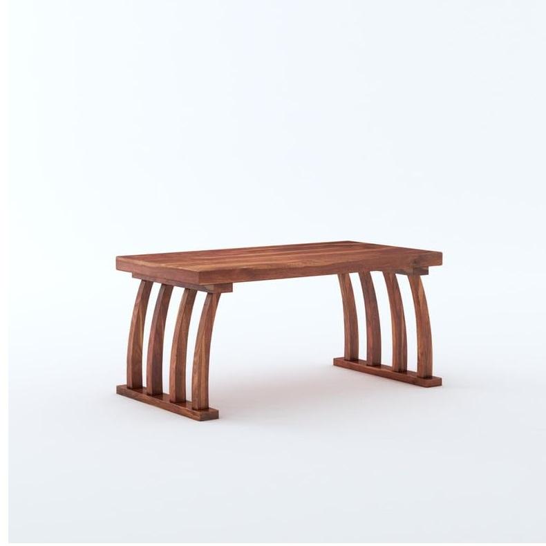 Curved Wooden Top With Natural Brown Color Coffee Table With Fully Mango Wooden Body With Sizes 91D X 45W X 45H Centimeters