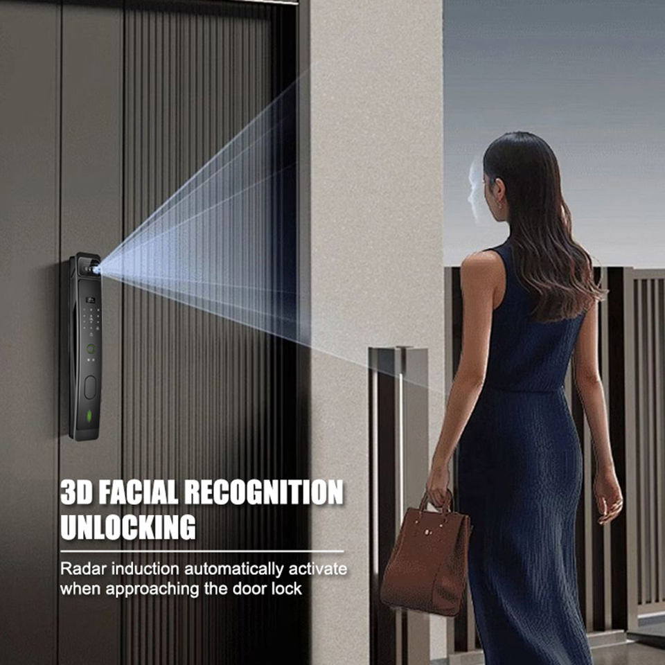 Curved surface serrure de porte intelligente camera electric palm vein face unlock digital door lock with remote control