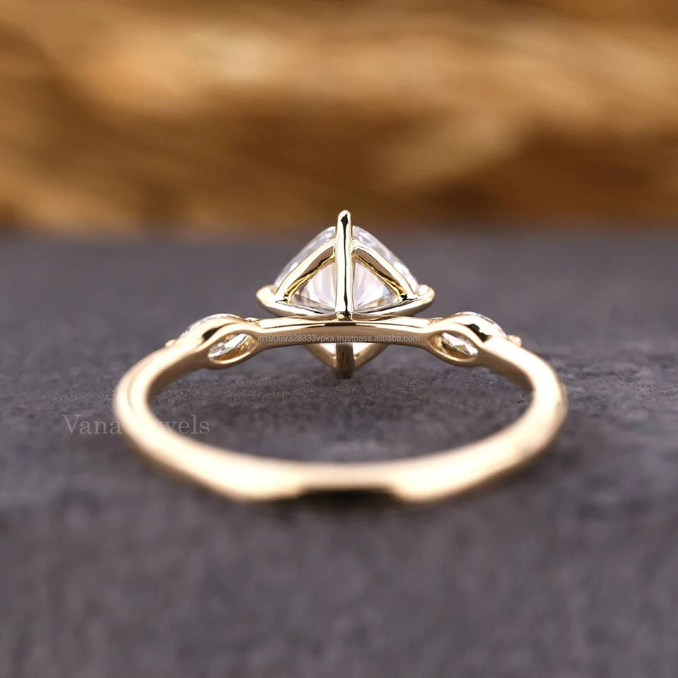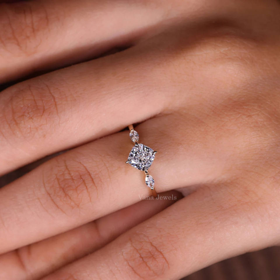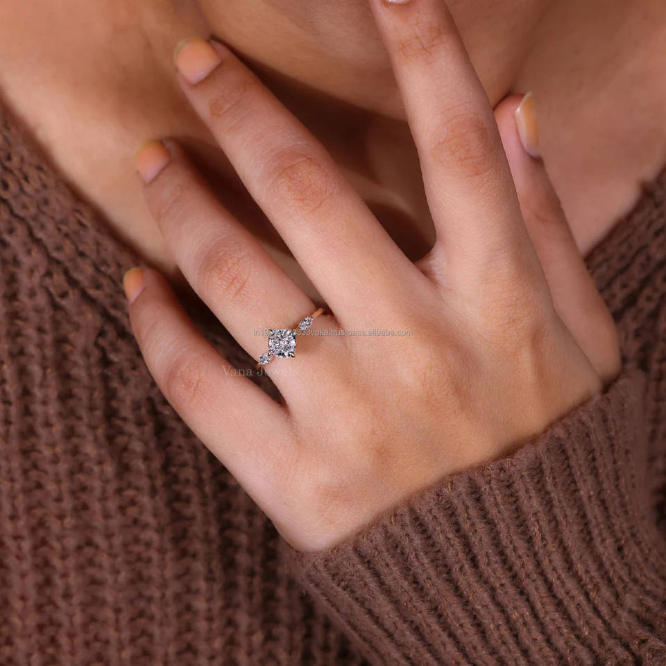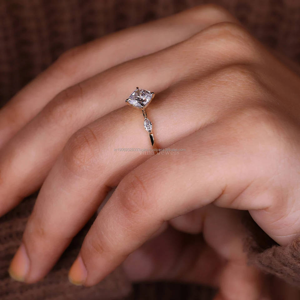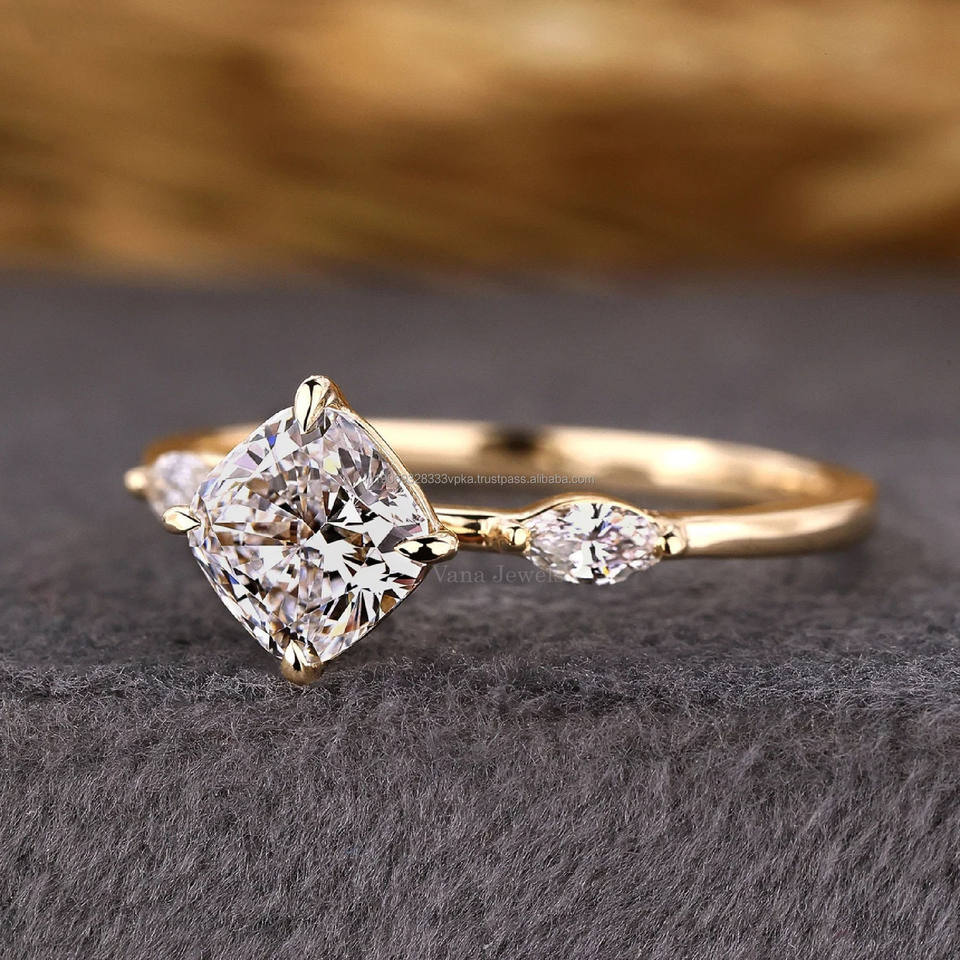 แหวนหมั้นเพชรแบบตัดรูปเพชรสำหรับผู้ใหญ่ตัดด้านข้างเป็นวงแหวนทองด้านทันสมัยได้รับการรับรองจากร้านหมอน