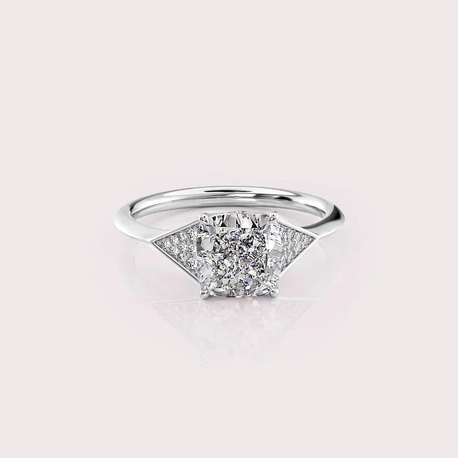 แหวนหมั้นเพชรทรงคุชชั่นคัท เพาะเลี้ยงในห้องปฏิบัติการ ตัวเรือนทองคำ 18K สีโรสโกลด์/ไวท์โกลด์/เยลโลว์โกลด์ เครื่องประดับสั่งทำพิเศษ