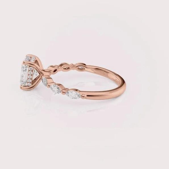 แหวนหมั้นเพชรทรงคุชชั่นคัท เพชรเพาะเลี้ยงในห้องปฏิบัติการ ตัวเรือนทองคำขาว/โรสโกลด์/เหลือง 9K ประดับเพชรเม็ดเดี่ยวพร้อมเพชรข้าง